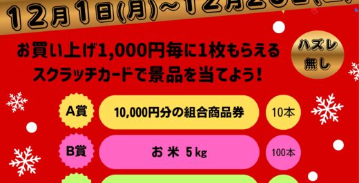 手稲本町商店街の年末感謝祭では、スクラッチカードで景品を当てよう!ハ…