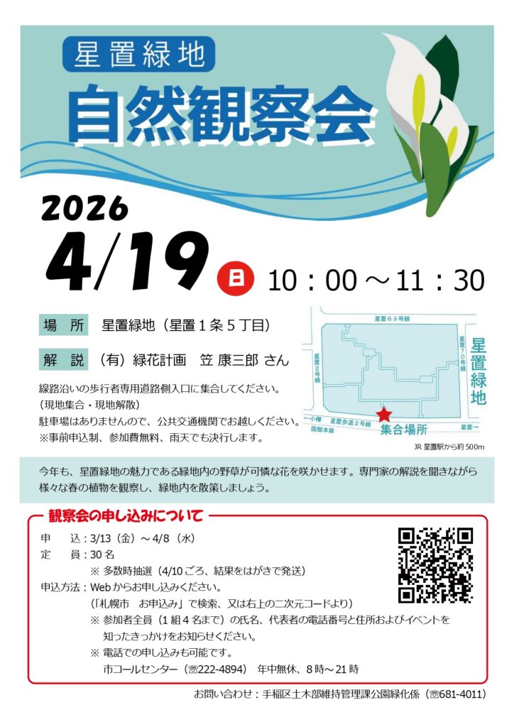 集合場所:星置緑地(星置1条5丁目)※現地集合・現地解散